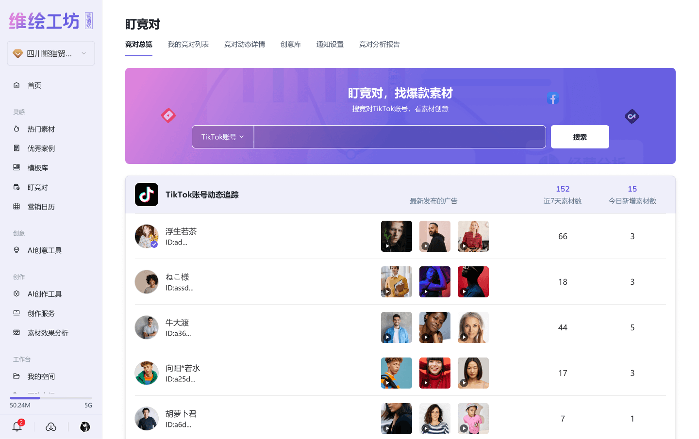 实时监控竞品投放素材、核心卖点、上新节奏与流量趋势,自动生成竞对周报+行动建议,提升创意决策效率